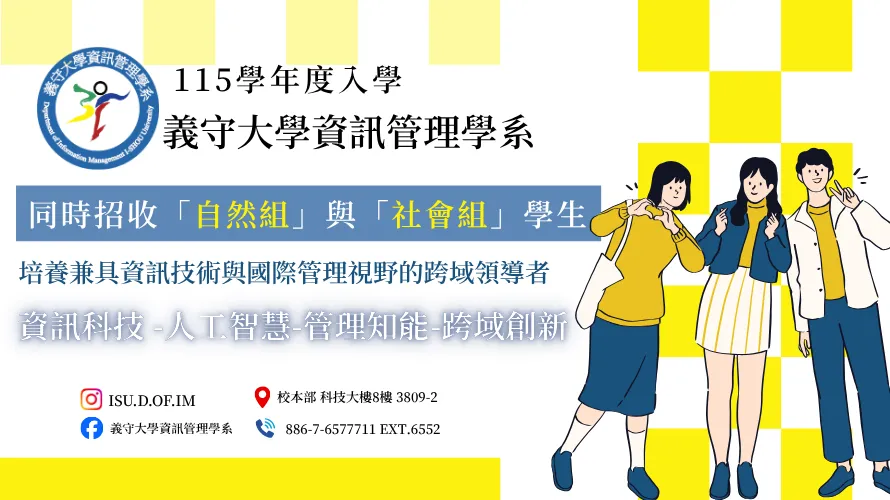 義守大學資訊管理學系115學年度入學招收自然組與社會組學生